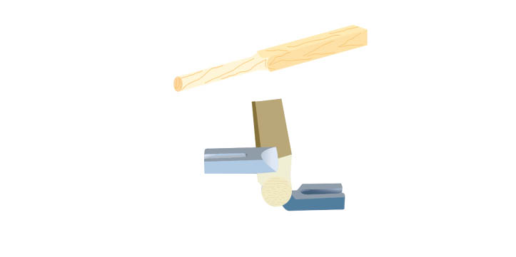該設(shè)備用于將木方旋切成圓棒,主要用邊角余料加工圓棒